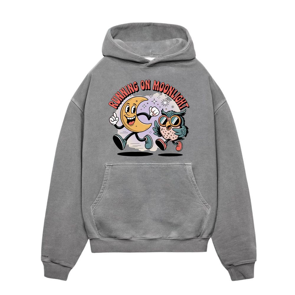 Running On Moonlight Cartoon Moon And Owl Retro Hoodies